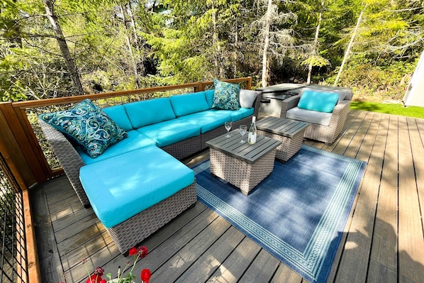 Terrace/patio - Brand-new home with hot tub, deck, fast WiFi, central AC, & great location (Manzanita)