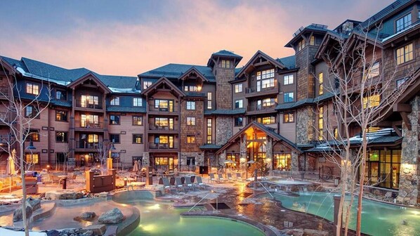 Complimentary Shuttle services to downtown; On-site Restaurant and Bar; Free indoor heated Parking Garage; Indoor/Outdoor Swimming Pool, Hot Tubs; Firepit; Spa, Sauna; Movie Theaters; Escape Room; Free Wi-Fi.