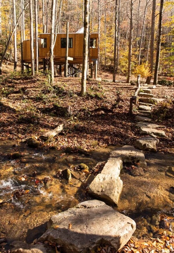 Welcome to our extraordinary treehouses! Tucked away by a tranquil creek, indulge in heated floors, gourmet espresso machines, and luxurious en suite bathrooms. With a blissful cross breeze, immerse yourself in the beauty of nature. Whether you're seeking a group adventure with friends or a secluded romantic getaway for two, our treehouses offer the perfect sanctuary. Your ultimate dream escape awaits!