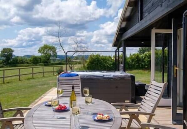 Outdoor dining - Ash Lodge - Exclusive Lodge with Hot Tub and stunning views (Bridport)