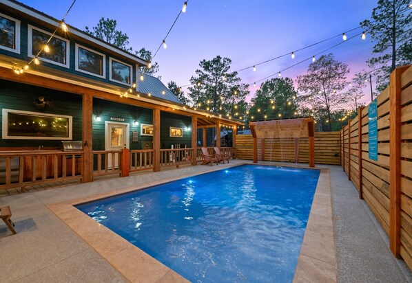 Guests can enjoy a brand-new private pool made for all seasons, thoughtfully designed to fit whatever the weather brings. Whether you prefer the water warmed for a cozy evening soak or cooled down for those hot summer afternoons, it’s easy to set the perfect temperature. Imagine lounging with peaceful forest views, drifting under the stars for a quiet midnight float, or kicking off the morning with a refreshing swim. No matter the time of year, this pool brings a special kind of magic to the property.