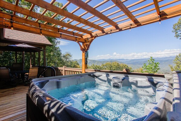 Outdoor spa tub - Grant & Garrett's Mountain Hideaway Spectacular Long Range Views (Bryson City)
