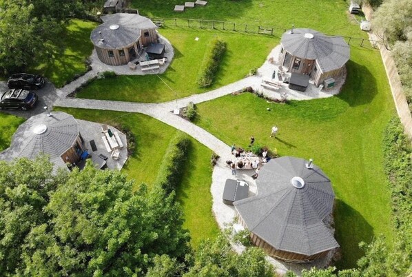 The Boathouse is one of four grouped family Roundhouses set in a small dedicated paddock. Each sleeping up to 6 (2 adults and up to 4 children) or up to 4 adults. They all have their own electric hot tub and outside seating, perfect for star gazing after a day at the beach.