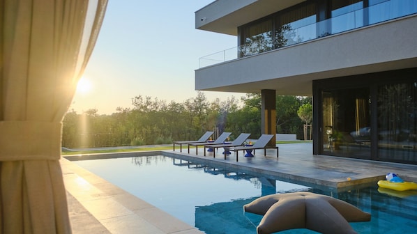 Villa Volpe Verde offers a luxurious and spacious retreat nestled in the serene rural landscape near Buje, perfect for families and couples seeking a tranquil getaway. This stunning 400 square metre property sits on a generous 2000 square metre plot, providing ample space and privacy.