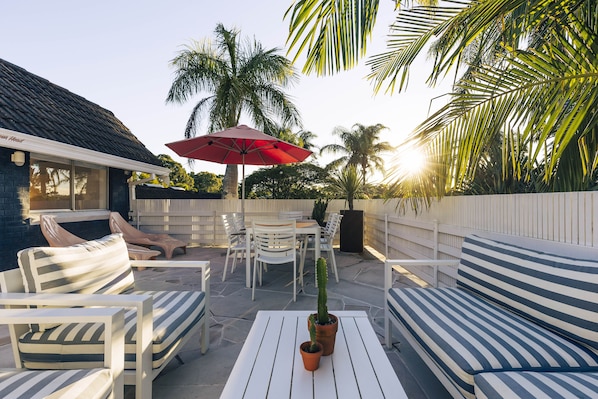 A peaceful retreat surrounded by greenery where travelers can unwind by the pool or venture out to explore Brunswick Heads - guests feel instantly comfortable here.