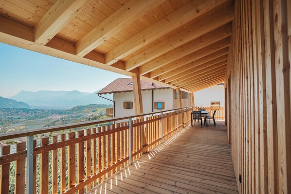Your private covered terrace offers a perfect spot to relax and enjoy the fresh mountain air. The shared garden provides additional outdoor space where you can unwind and connect with nature.