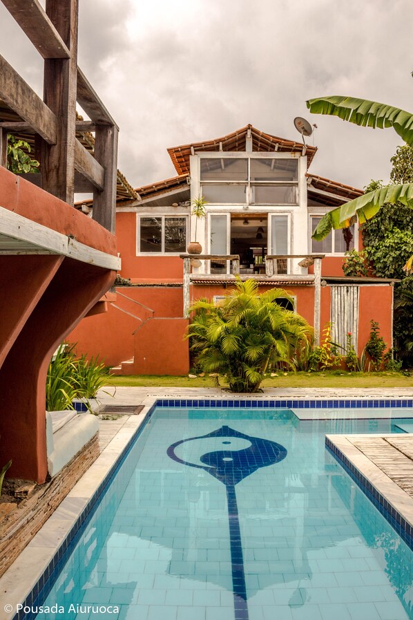 Travelers find a garden retreat at Pousada Aiuruoca, where the outdoor pool beckons and the 24-hour front desk ensures assistance whenever needed
