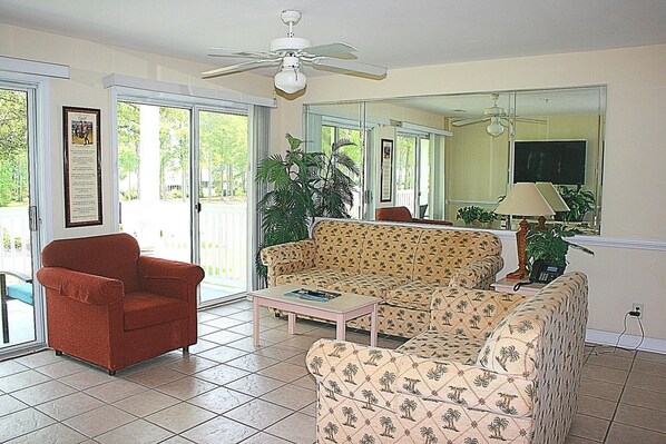 For your convenience, bed linens and bath towels are included with your rental. We do recommend that you bring your own pool/beach towels and your golf clubs! We have a full-service pro shop, and 27 holes for your enjoyment, with an onsite 19th Hole restaurant and bar. We have over 50 affiliated golf courses within 30 miles or less of our resort for even more expansive golf experiences.