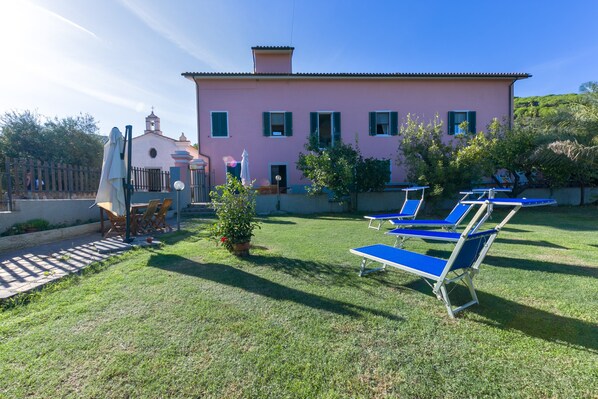 Only 2 km from the sandy beach of Marina di Campo, you will find this apartment on the first floor of a charming country house. It can accommodate up to 6 people and features a living room with a single pull-out sofa bed (suitable for up to 2 people), a kitchenette, 2 bedrooms, and a bathroom. The apartment, also suitable for children, offers WLAN internet connection, satellite TV, high chair (on request), children's bed (available for an extra fee), baby cot, and parking. You can enjoy a large, fenced communal garden with a barbecue area and sun loungers. The renowned resort of Marina di Campo, with its many restaurants, shops, bars, and the beach, can be reached in just three minutes by car.