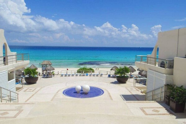 enjoy a view of the turquoise sea! hikes on the beach!!! a children's jacuzzi pool right next door and two more pools. Centrally located