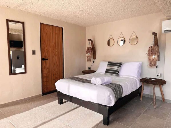 In the heart of Cancun, this boutique suite apartment is designed for a perfect stay. With thoughtful décor and details, you'll feel right at home. Enjoy stable Wi-Fi, air conditioning, and a Smart-TV in your private space.