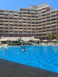 Yes, this property has 3 outdoor pools and a children's pool. Pool access is from 11:00 AM to 7:00 PM.