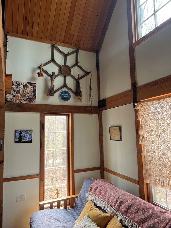 All guest rooms at Tiny Timber frame 1-bedroom cabin in Candor with AC/Heat, Outdoor fire and tub. include comforts, such as air conditioning.