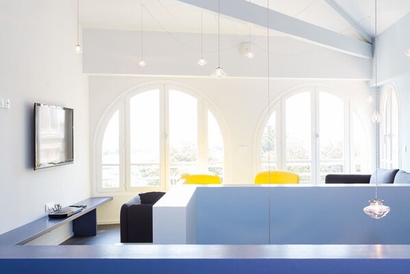 This might be the best rental apartment experience we've ever had! I'll break this up, because there are so many (good) things to say. Bedrooms/Bathrooms: Beds, linens, and pillows are all very comfortable and in excellent condition. You can't go wrong with either bedroom. Both have ensuite baths and excellent storage/closet space. The front bedroom has a bit more street noise, so if you're a light sleeper, head for the bedroom on your left. The bathrooms were outfitted with new, clean towels, a hairdryer, soap, shampoo, conditioner, and lotion. The walk-in showers had great pressure. All very modern. The larger bathroom holds the washing machine (no dryer, but there's a drying rack in the second bedroom). Kitchen: Julien made sure there were snacks, waters, beer, and local ice cream bars awaiting us! The kitchen is very modern and well equipped. The balcony is the perfect spot for an afternoon glass of wine. Living Room: Plenty of room on the spacious sofas, plus two swivel chairs. Perhaps the best part of this whole apartment is the arched windows in the living room. It's hard to even want to leave the apartment! Just open the windows and you have full sun all day long, and with a gorgeous view of the harbor! Wifi is fast and dependable. Location: The location can't be beat! a two minute walk to the market, less than 10 min walk to the train station. Head out to the point where the ferry departs and enjoy the beach while looking at the mountains (less than 10 min walk). Just a five min walk to the top of the hill in the suquet. The apartment is very secure - three locked doors before entering the apartment. This is essentially a penthouse apartment and there is no elevator, so be prepared for lots of climbing (which you'll need after all the pizza and croissants!). I would not hesitate to stay here again. We had a wonderful time!