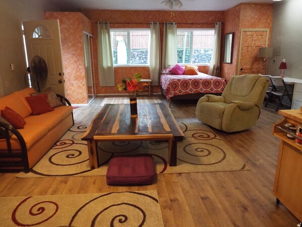 In the quaint neighborhood of Manini Beach, Kealakekua Bay Paradise offers a serene escape. Unwind in the cozy studio surrounded by nature's sounds and enjoy snorkeling at nearby Kealakekua Bay with its colorful reef fish and green sea turtles.