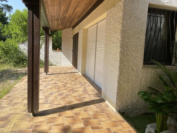 The house features a fully equipped kitchen, allowing you to prepare your meals easily, just like at home. You will find everything you need to cook comfortably during your stay. The bright and welcoming living room is a true living space where it is pleasant to gather after a day at the lake or the ocean. It offers a relaxing atmosphere for sharing meals, unwinding or enjoying quality time together. The sleeping area includes three comfortable bedrooms. Two bedrooms each have a double bed, ideal for couples, while the third bedroom is equipped with two single beds, perfect for children or friends. Everyone can enjoy their own space and restful nights. The house also features a bathroom and a shower room, both functional and well suited for family stays. The toilet is separate, providing additional comfort. Outside, you will enjoy the garden and terrace, perfect for outdoor meals and long summer evenings. The peaceful surroundings invite you to relax and fully enjoy your holidays.