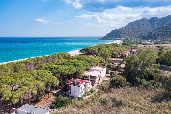 The apartment is located on the 1st floor of a small apartment building, on the Museddu waterfront where there are several kiosks/beach bars.