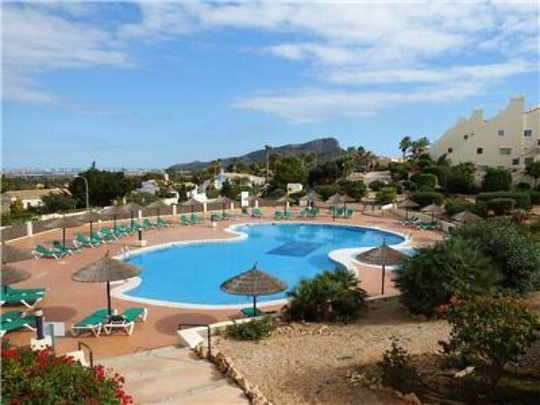 The apartment is on 2 levels and benefits from a south facing private solarium, accessed by an internal staircase. Access to the apartment is via steps, and it is close to the indoor pool. Free wifi is also included.