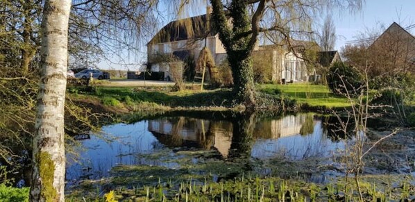 Tythe House is a lovely stone-built barn conversion, surrounded by 2 acres of gardens with wonderful views across the Oxfordshire countryside. The spacious sitting room has comfy sofas, a large coffee table and welcoming wood burner stove perfect for relaxation and games. Enjoy family meals in the farmhouse-style kitchen or on the deck overlooking the pond.