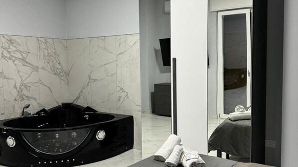 The ROOM SPLENDID BY GIOVI'S Apartments is located in Castellammare di Stabia, 2 minutes from the sea of the municipal villa, 1.5 km from the equipped beaches of Castellammare di Stabia, 22 km from Marina di Puolo and 27 km from Vesuvius. The property is located 27 km from Roman Archaeological Museum MAR, 30 km from Amalfi Cathedral and 30 km from Amalfi Port. The room has family rooms. A jacuzzi in the bedroom and an exclusive kitchen The units come with air conditioning, a fully equipped kitchen with a dining area, a flat-screen TV and a private bathroom with bidet, a hairdryer and free toiletries. Wi-Fi is free for all guests, while selected rooms include a terrace. At the rooms, all units come with bed linen and towels.