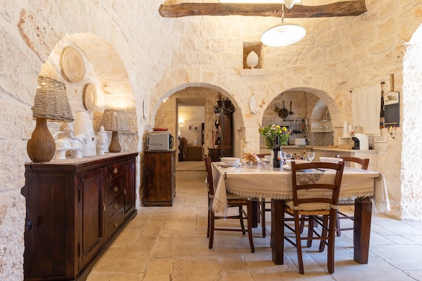 Inside the property you will find written guidelines on how to use the facilities during your stay. The guests are offered a welcome basket with typical products from Puglia such as wine, focaccia, taralli, etc. Food tastings and chef service available upon request at an additional cost, please check with the host for additional offers and services. Guided tours in English are available and need to be booked in advance. Late check-in is possible for an extra fee. Simply send the homeowner your shopping list and they will be glad to buy all the required items for you. Towels and bed linen are included in the price. Beach/pool towels are provided for an extra fee. The property offers homemade/homegrown produce. 4 mountain bikes can be provided on site by agreement with the owner.