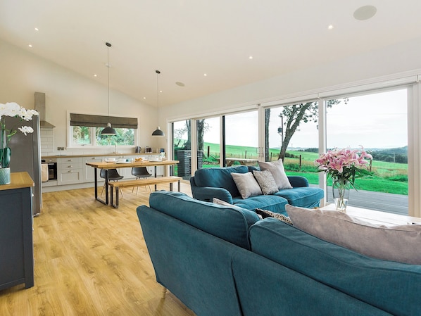 Enjoy a break away in a stunning architect designed lodge with the most magnificent views over Fleet Bay.. 1 step to entrance.