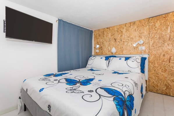 The property is located in a renovated 1940s building. The accommodations are loft-style, with bedrooms on the upper floor and a maximum height of 1.80 m. The units do not have windows, but the entrance door has an openable transom window.