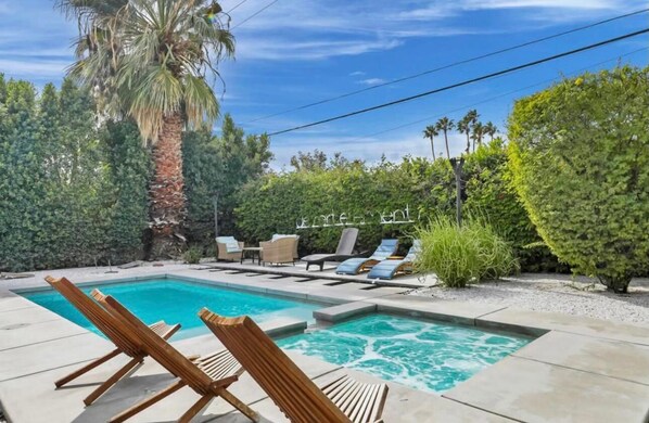 Escape to a beautifully manicured oasis in one of Cathedral City's most sought-after neighborhoods, where this luxurious retreat offers everything you need for an extended vacation. With a spacious resort-style backyard featuring a pool and spa, unwind with evenings under the stars on the furnished patio with fire pit.