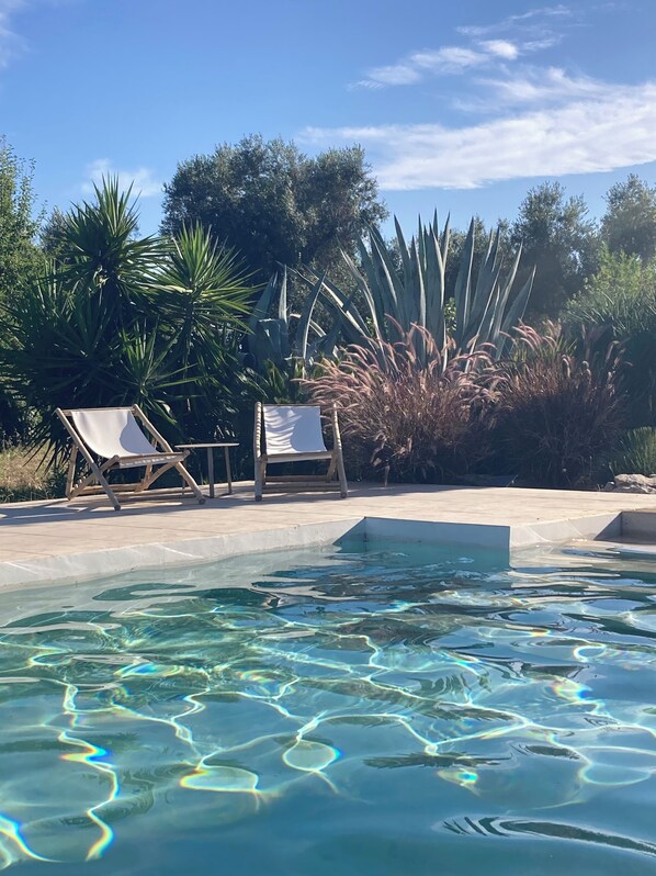 Casale Dell’Oliveto is a tranquil and spacious country villa. Converted from old farm buildings, incorporating two trullo cones and lamia and set in a privately owned, fenced five acre olive grove, with many almond, fig and pear trees and even pomegranates in season.
