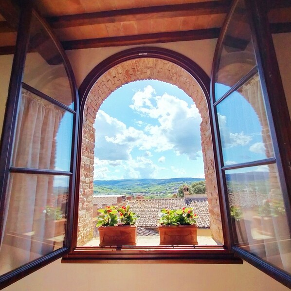 Its main feature is for sure the medieval tower/terrace with a breathtaking view over the whole ancient town, the surrounding country and the famous towers of San Gimignano!