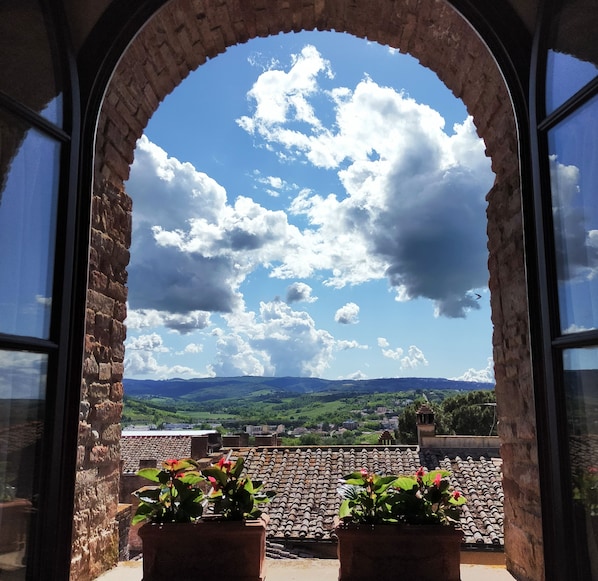 The main feature is the private tower/terrace with amazing views of the medieval town and the surround Tuscan countryside.
