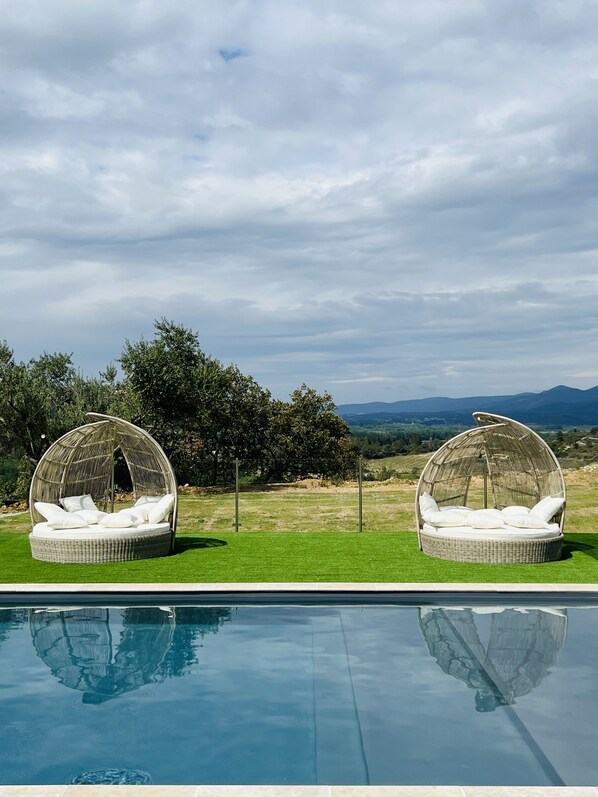 Outdoor pool, a heated pool - 3-bedroom gîte with swimming pool and view of the Orb valley (Cessenon-sur-Orb)