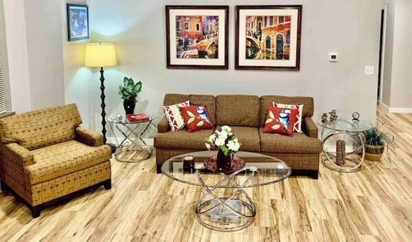 Nestled in Charleston, this charming apartment offers a serene retreat with 2 bathrooms for added convenience. Unwind in the cozy living room or enjoy a peaceful night's sleep on either the king or queen bed.