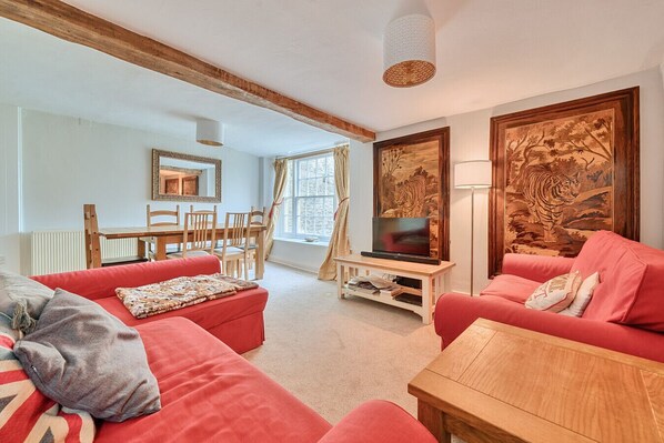 Guests share access to: - A luxury bathroom with freestanding bath, large shower, dual sinks, and views over the paddocks - A second WC downstairs for added convenience - A fully equipped kitchen with oven, hob, fridge/freezer, microwave, dishwasher, toaster, and breakfast bar — plus a coffee pod machine and all essential cookware - A bright living room with Roku smart TV, soundbar, and two comfy sofas (one of which can convert to a double sofa bed if needed) - A dining room with oak table seating 6–8 and direct garden access - A boot room and utility entrance – ideal after muddy country walks - A dedicated workspace on the landing with daylight skylight and internet connection