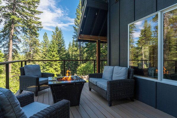 Outdoor Living: • Inviting back deck with cushioned seating, a propane fire table, and forest views—perfect for morning coffee or stargazing • Propane grill with utensils for outdoor meals • Gravel fire pit area with Adirondack chairs (check Kittitas County burn bans before use) • Outdoor 240v plug available for your electric vehicle charging needs • Plenty of parking space