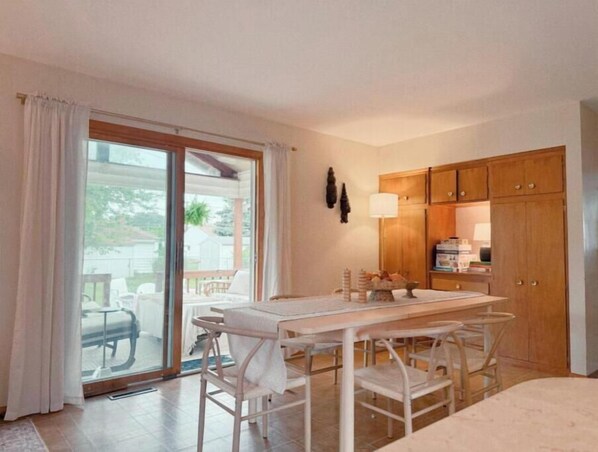 – 2 king beds + 1 twin bed – Queen air mattress for 5th guest – 1 full bath with shower/tub combo – Fully stocked kitchen – Dining table + separate living room – Smart TVs + fast Wi-Fi – Washer & dryer in basement – Fenced backyard with grill + deck – Driveway parking for 3 cars – Single-story home—no stairs inside – Hot tub coming in 2026!