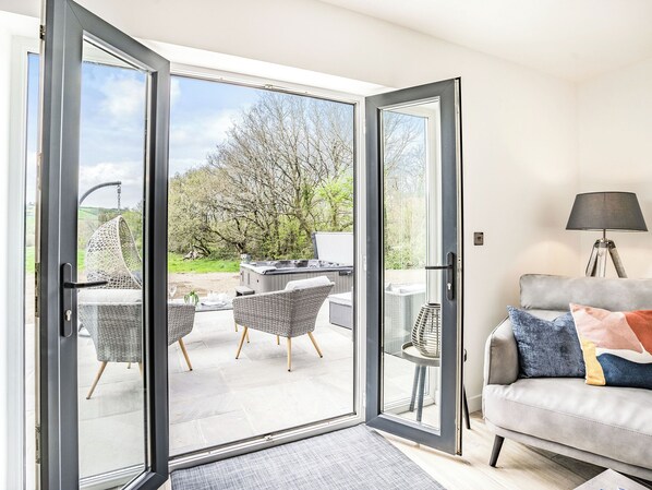 Picked for its tranquil location, private hot tub and views over the meadows.. 1 step to entrance.