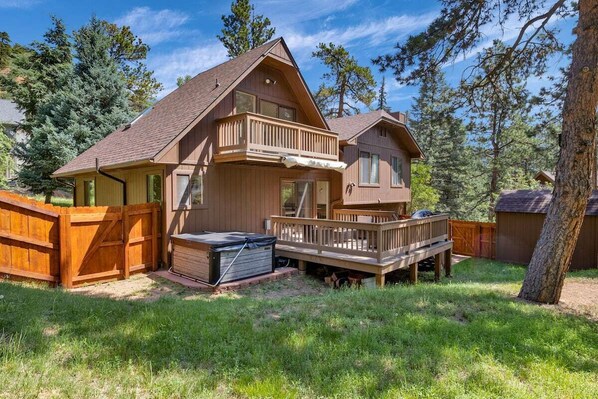 This mountain retreat is located steps away from the Catamount Trail on the most coveted street in Green Mountain Falls. Enjoy the quaint town, explore the hiking trails, go fishing... or, stay in and relax in the private hot tub, cozy up in the indoor movie theater, and enjoy a drink on the outdoor deck! This home also features a fenced in back yard for children and fur babies!