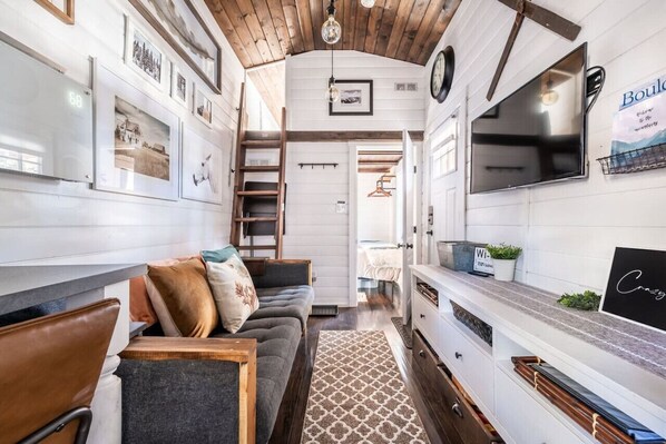 Peak View Park's Tiny Home is a cozy retreat in the mountains, close to world-class fishing and hiking spots. Unwind with beautiful views of Pikes Peak from your doorstep or relax in the lounge space with a flat-screen TV for streaming your favorite shows.