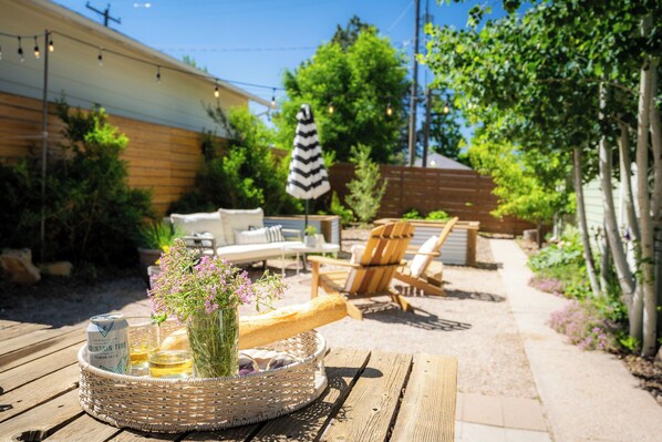 This house takes advantage of the beautiful weather Colorado gets most of the year with outdoor couches and tables set up for your enjoyment (a gas grill as well). In the colder months we will have a fire pit set up to enjoy those chilly Colorado evenings.