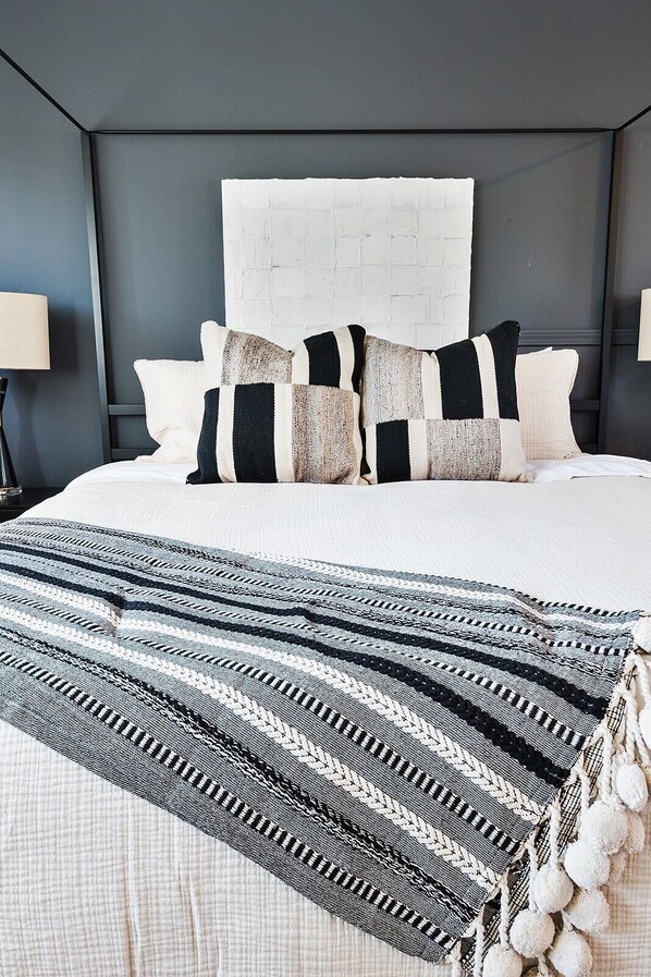 The kitchen is stocked with basic essentials and has two plug in burners with a set of pots and pans. We have a hot water kettle, Keurig, and a French press for you to enjoy!