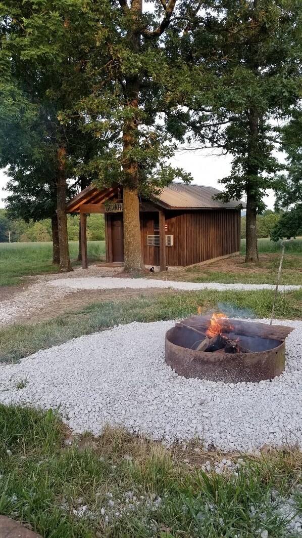 The perfect place to enjoy what our area has to offer. Sleeps 6 people with 4 beds. Two twins and two doubles. Bathroom with toilet and shower. Kitchen is outside next to the fire pit. Heat and air in the cabin.