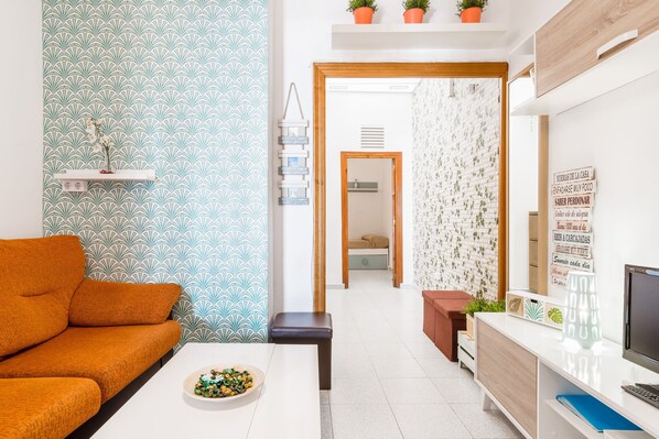 The apartment Destino Conil is located in a quiet side street in the middle of the popular holiday resort Conil de la Frontera. The apartment is on the ground floor and has a comfortable living room, a very well-equipped kitchen, 2 bedrooms (one with a double bed, one with 2 pull-out single beds) as well as a bathroom and can accommodate 6 people. The child-friendly apartment is also equipped with Wi-Fi, fans, a television, a baby cot, and a highchair. The accommodation is suitable for everyone who wants a cosy, family-friendly holiday apartment close to the beach.