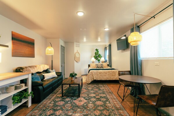 Nestled near the shores of Conneaut Lake, this efficiency apartment offers a serene retreat. Unwind on the large deck, connect with WiFi, or relax in the comfort of a queen-sized bed and smart TV. With plenty of off-street parking and central air conditioning.