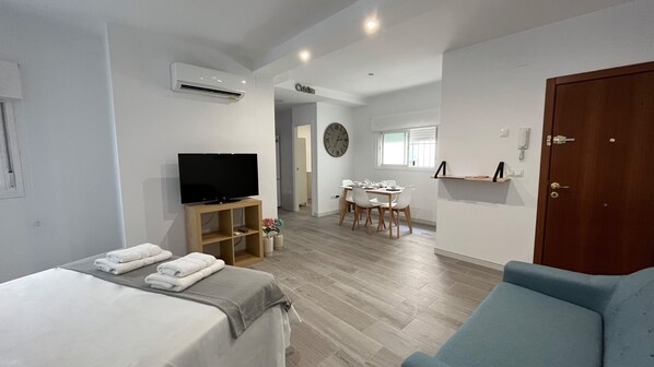 The apartment offers air conditioning and Internet access.