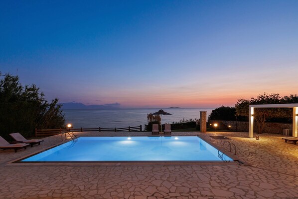 If you want a great seafront location, Villa Victoras is the ideal choice! Its location secures fantastic panoramic sea views, and you'll even have your own private access to the small pebble beach at the end of the garden. And not only that, but this fantastic 3 bedroom house also has a large private swimming pool and lawn. The main beach and facilities of Sidari are all within a short drive. Pool heating, WiFi, and air conditioning/heating in the bedrooms are included.