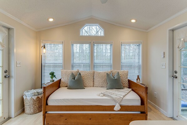 At the Cottages at Bear Hollow in Monteagle TN, unwind amidst serene surroundings and enjoy nature. With a short walk to South Cumberland State Park Visitor Center and Meadow Lake Trail district, this charming space offers comfort, charm, and convenience.