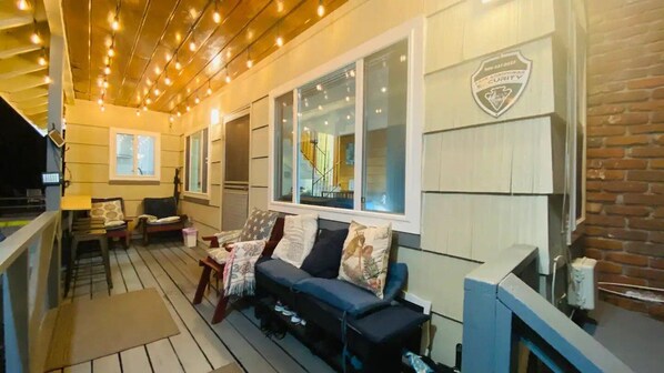 The cabin sits atop a hill which features majestic tree lined views to surround you. The driveway leading up to the front of the home is long enough to park multiple vehicles. Large outdoor patio with plenty of seating. Outdoor BBQ grill, dartboard, washer & dryer, patio tables for outdoor dining, or for taking in the evening. Take time to appreciate those around you, beneath a sunset or starlit sky. Less than a 5 minute stroll down to waterfront, Goodwin & Sons Grocery Store, Bear Claw Saloon, Rim bowling and entertainment center, Skate Park, Library, Diners, Fishing/water activities, hiking trails, outdoor fun and more! This home is a comfy and cozy tri-level home that sleeps 14 guests! Features WiFi, cable TV, wood burning fireplace, and two ac units for the bottom and top floors to keep you cool in the summer. Kitchen is equipped with cookware and full size refrigerator to help get those family dinners on their way. Great for large families and group getaways, snuggles, and bonding.