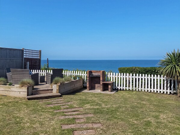 Bathroom: Bath With Shower Over, Toilet. Gas central heating, gas, electricity, bed linen, towels and Wi-Fi included. Travel cot and highchair available on request. Welcome pack. Laundry room on-site with tumble dryer (shared with other holidaymakers). Games room on-site (shared with other holidaymakers). Enclosed lawned garden with decking, garden furniture and barbecue. Private parking for 1 car. No smoking or e-cigarettes/vaping.. Located in a private position on the edge of a popular static caravan site, Sea View Cottage has one of the most superb vistas as you can see all the way along the beach to the much loved Cromer Pier.