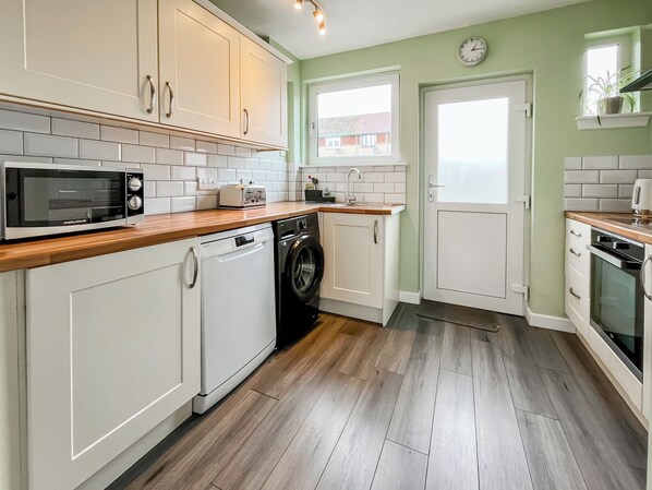 Kitchen: Electric Oven, Electric Hob, Microwave, Fridge/Freezer, Dishwasher, Washing Machine
